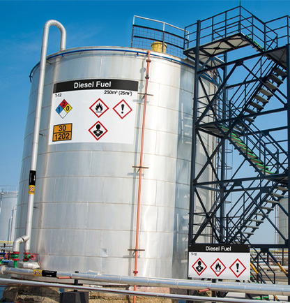 Továbbá optimális jelölőanyagokat is, amelyeknél elkerülhető a korrózió és maximalizálható a kültéri UV- és nedvességállóság a létesítmény környezetében. Több mint 100 éves azonosítási szakértelemre, saját anyagkutatási és fejlesztési erőforrásokra és hatalmas anyagismereti adatbázisra alapozva mindenféle tartályhoz tudunk optimális jelölőt biztosítani.